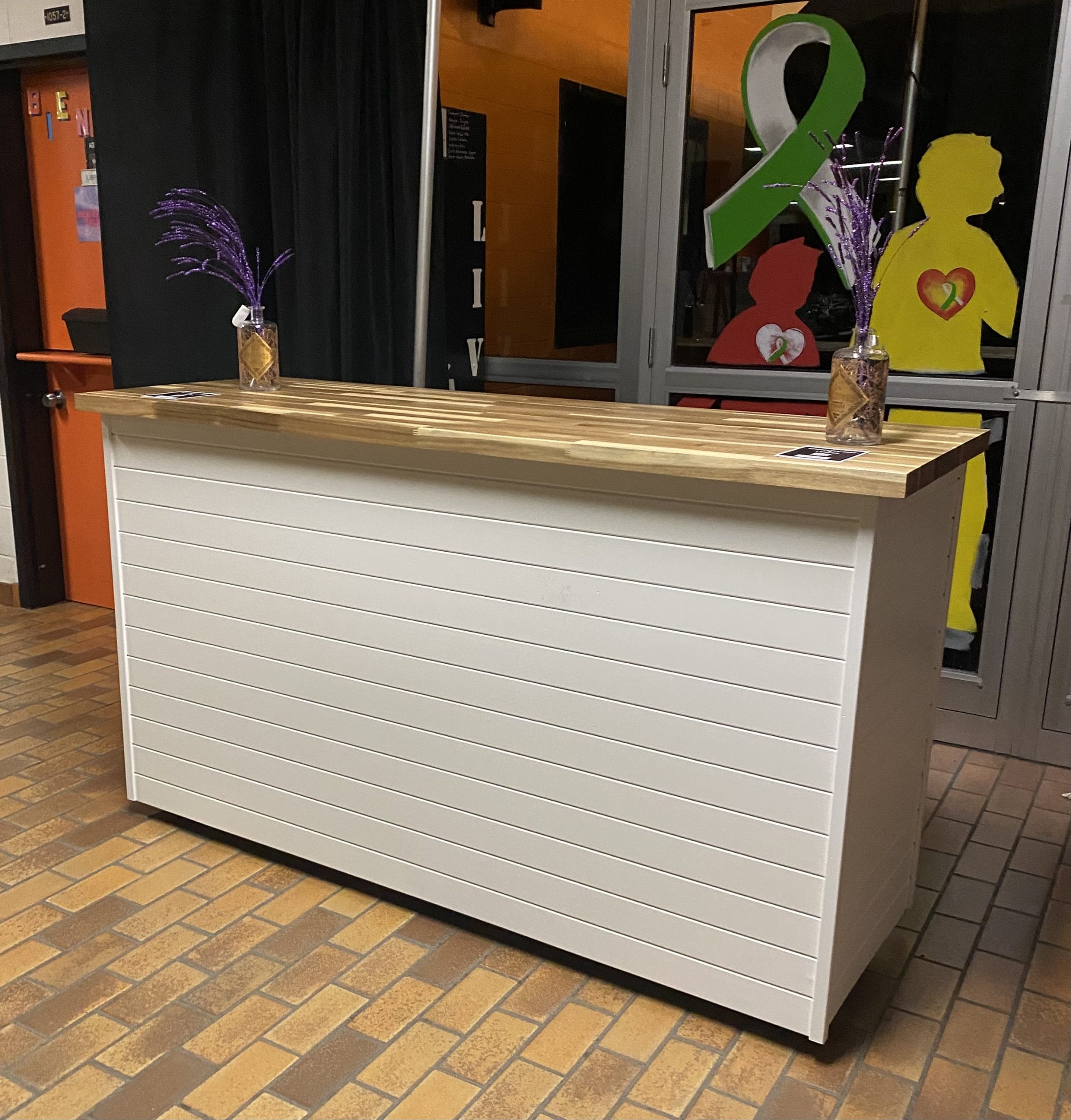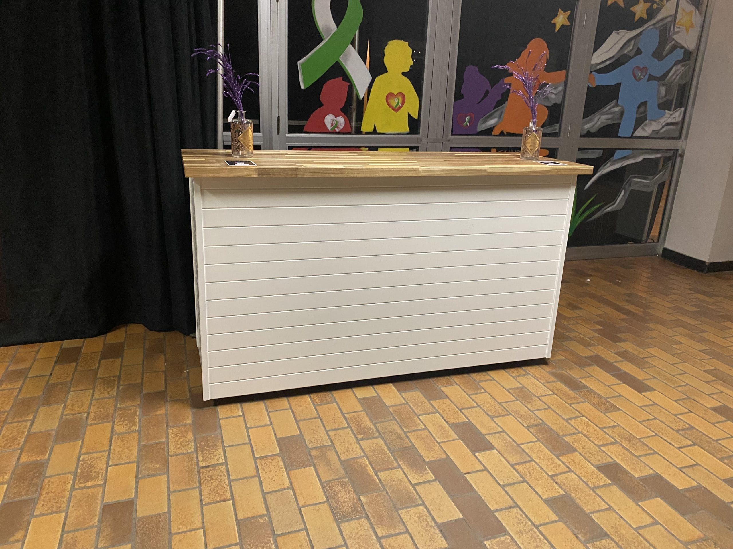 Bar mobile de 6 pieds avec surface en bois et roulettes intégrées — pratique, élégant et parfait pour vos réceptions, mariages et événements corporatifs.
